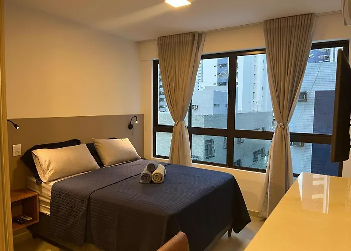Appartamento Flat Em Boa Viagem Recife, di 35 m², si trova a una distanza di 7 km dal Museo della città di Recife e a 350 metri dalla stazione della metropolitana Tancredo Neves. Inoltre, l'accesso a una piscina sul tetto assicura agli ospiti un soggiorno rilassante.